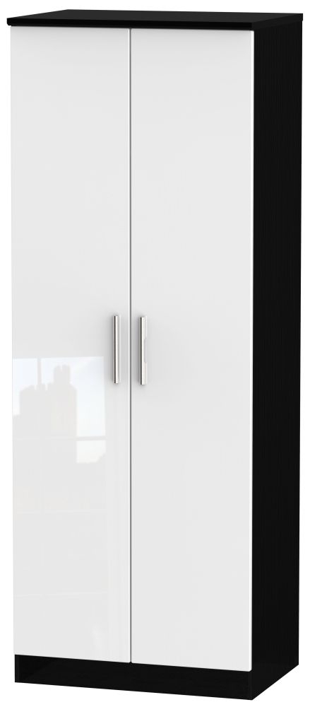 Knightsbridge White Gloss and Black 2 Door Plain Tall Wardrobe