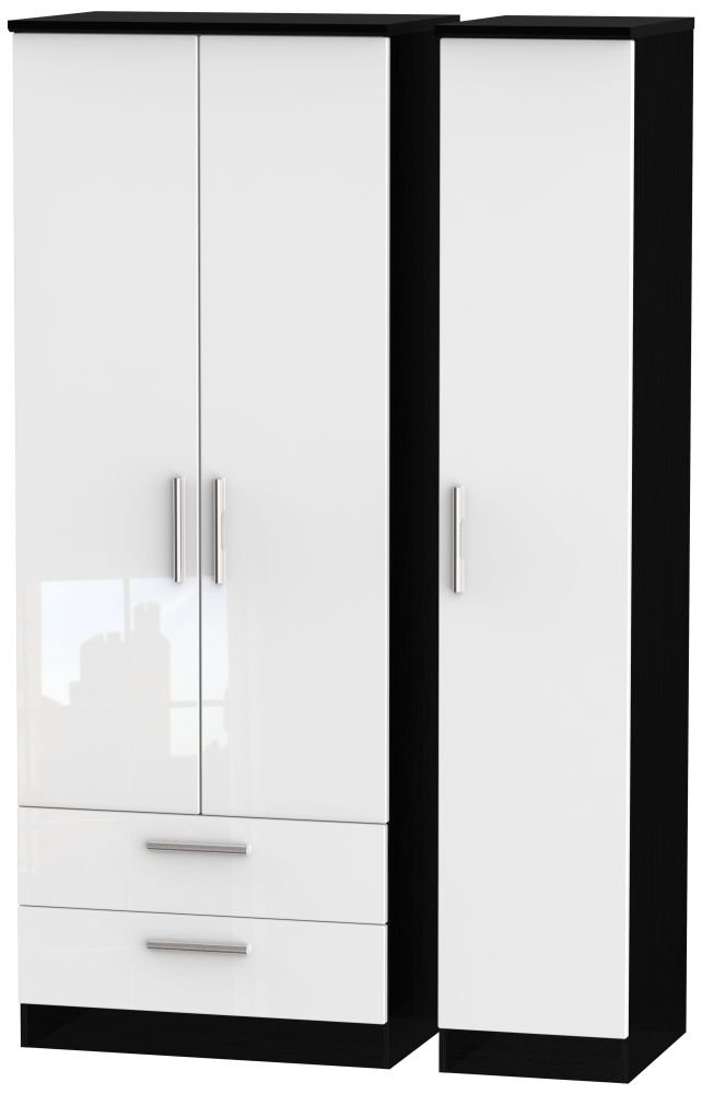 Knightsbridge White Gloss and Black 3 Door Tall Triple Wardrobe - LHF 2 Drawers