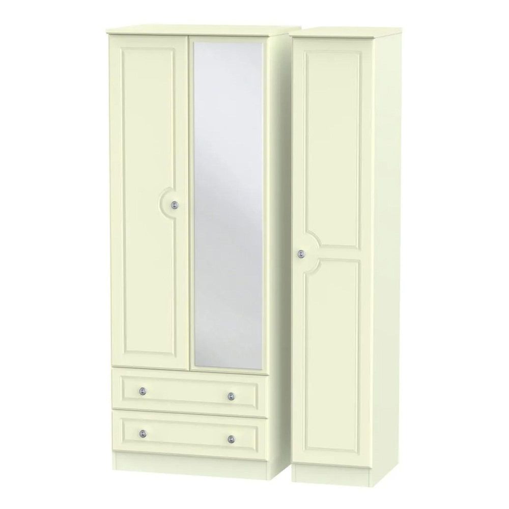 Pembroke Cream 3 Door Tall Combi Wardrobe - 1 Mirror and LHF 2 Drawers