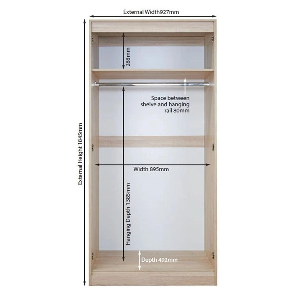 Item Code: PEM067C On ready assembled wardrobes Please note in the event the wardrobe does not fit in to your property we do not accept returns please ensure you measure your propertybefore placing an order for the ready assembled wardrobes.Standard Equipment Includes : 1 Hanging Rail and 1 ShelfThis is a Made to Order itemAll Made to Order items are manufactured as per the order supplied by you.We are unable to accept cancellation or accept any extra cost that may incur due to wrong information provided by you at the time you placed the order.We will confirm all sizes/colours/finishes in written email (order confirmation) with you before going ahead with production of your order.