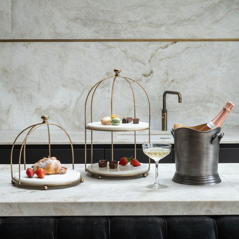 Item Code: 705800 Add a layer of sophistication to your table setting with the Cramant Wine Cooler. Expertly crafted from high-quality brushed steel, this cooler features a striking contrast between its cool, matte exterior and the warm, golden brass interior. The softly curved handles and embossed front emblem enhance its timeless elegance, making it not just functional but a true statement piece. Ideal for keeping your finest wines chilled, its luxurious design and refined color palette bring a sense of occasion to any gathering. As a precaution it is always advisable to protect surfaces from condensation and liquid spillages.Free Delivery
