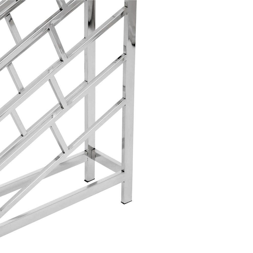 Item Code: 5528206 Exhibiting a sleek contemporary fixture, the Barolo wine rack will keep the place organised and tidy. Boasting a slim and angular profile, this wine rack holds the capacity of storing twenty four wine bottles with style. Skilfully handcrafted from stainless steel, this floor standing wine rack will complement a range of interiors and countertops.