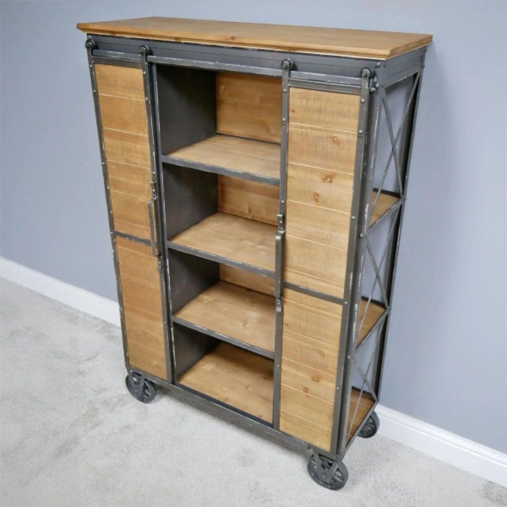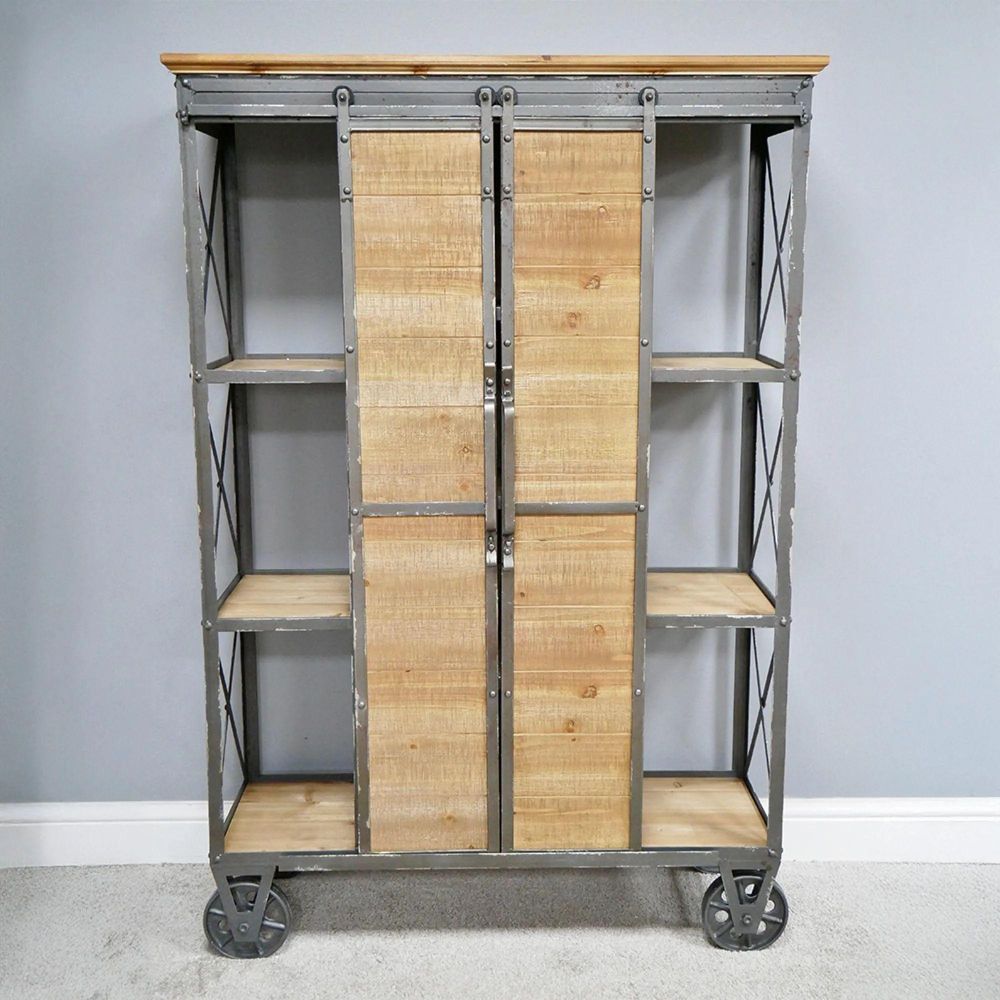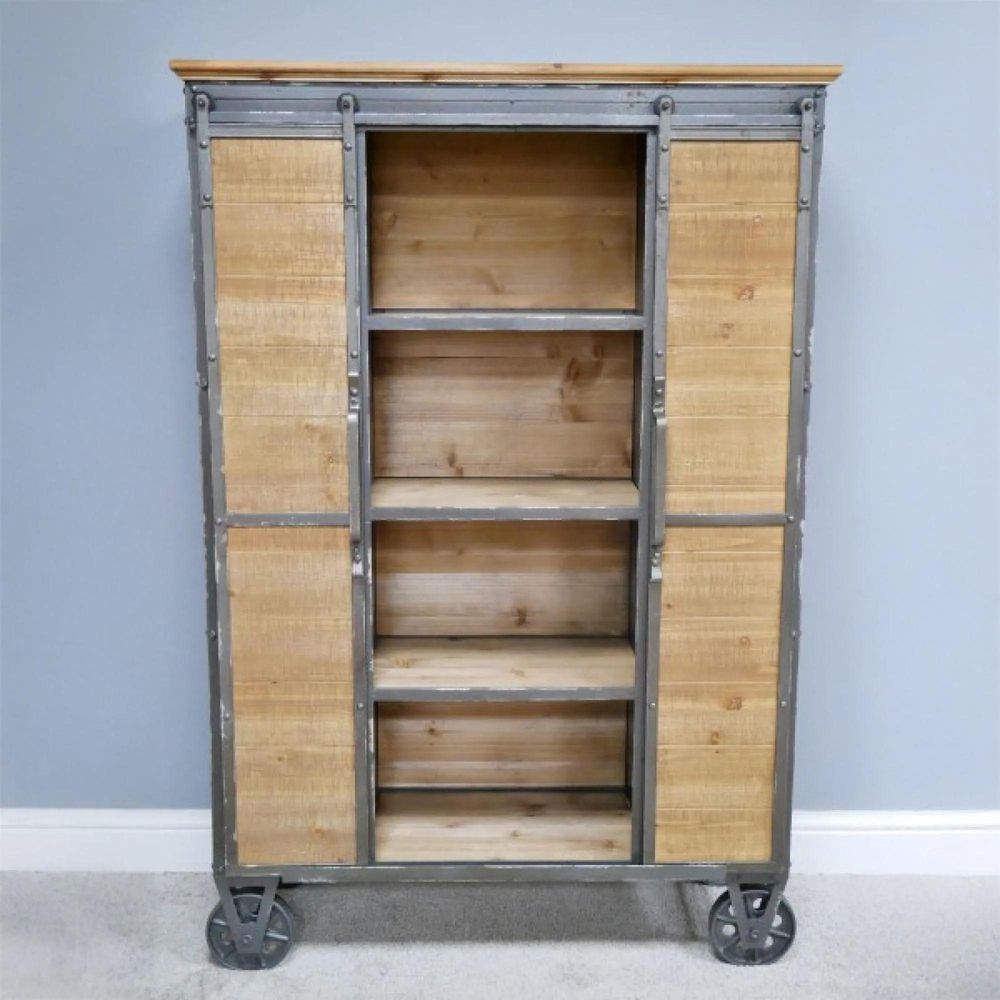 Tall Cabinet - Fir Wood and Metal - Industrial - on Wheels