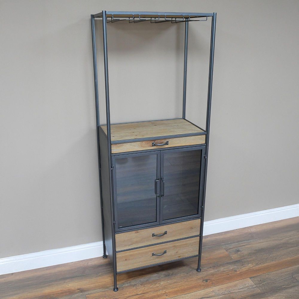 Wine Cabinet - Wood and Metal - 2 Door - 2 Drawer
